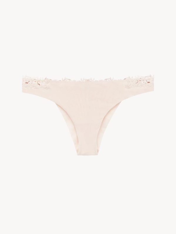 These Brazilian briefs combine the most flattering fit with exquisite artisanal craft. Cut from ultra-light lycra in a classic short silhouette, they are trimmed with macramé which has been carefully applied using the Florentine art of frastaglio.