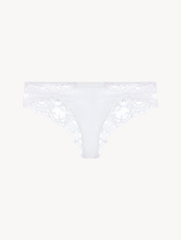 Brazilian briefs in floral stretch Leavers lace and stretch cotton jersey. A versatile, comfortable and elegant piece of underwear.