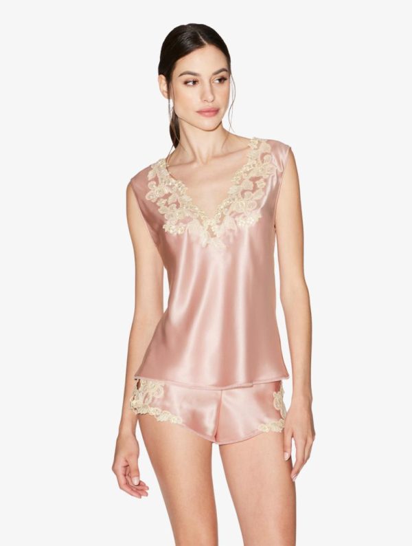 Camisoles | Women La Perla Pink Silk Satin Top With Frastaglio