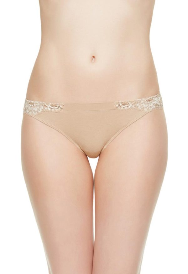 Thong in floral stretch Leavers lace and stretch cotton jersey. A versatile, comfortable and elegant piece of underwear.