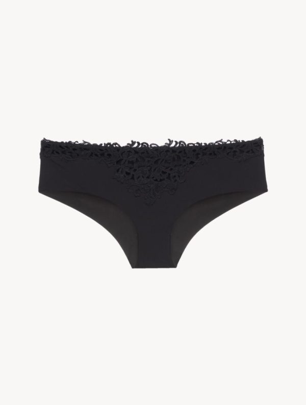 Briefs in ultra-light Lycra® embellished with refined macramé frastaglio appliqué.