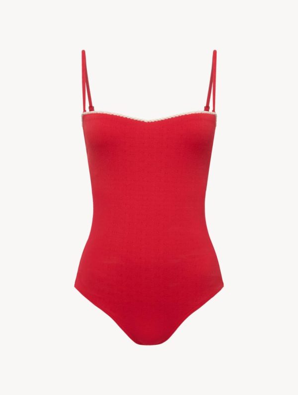 One-Piece Bathing Suits | Women La Perla Monogram V-neck Swimsuit In Red