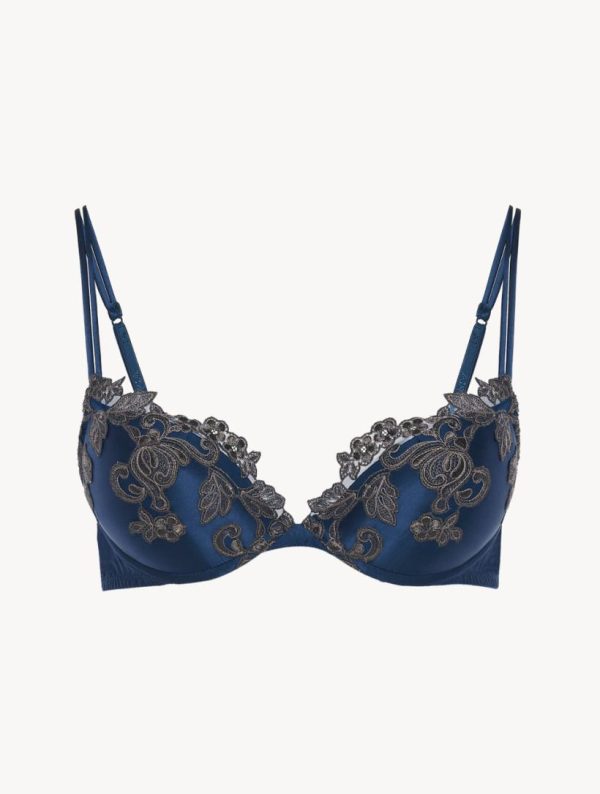 Padded | Women La Perla Luxury Silk Push-Up Bra In Blue With Frastaglio