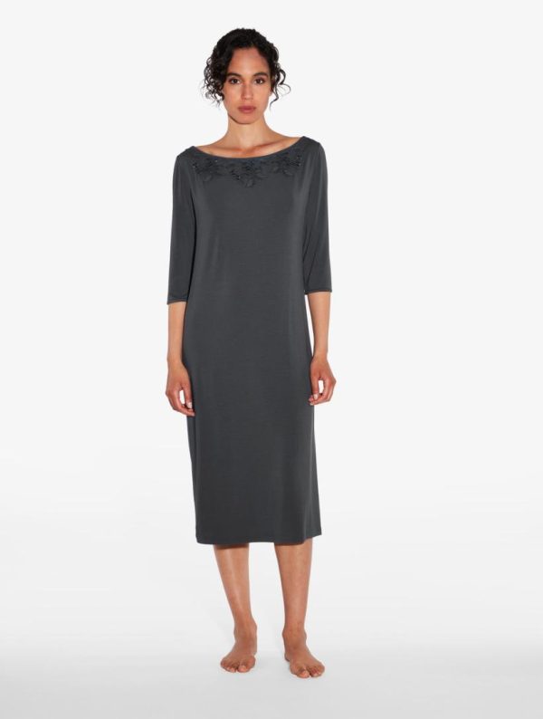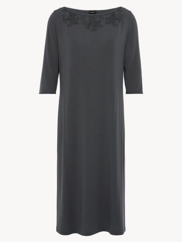 - Nightdress in charcoal grey modal jersey with embroidered tulle