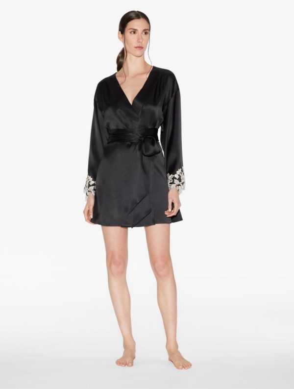 Robes | Women La Perla Luxury Long Silk Belted Robe In Black